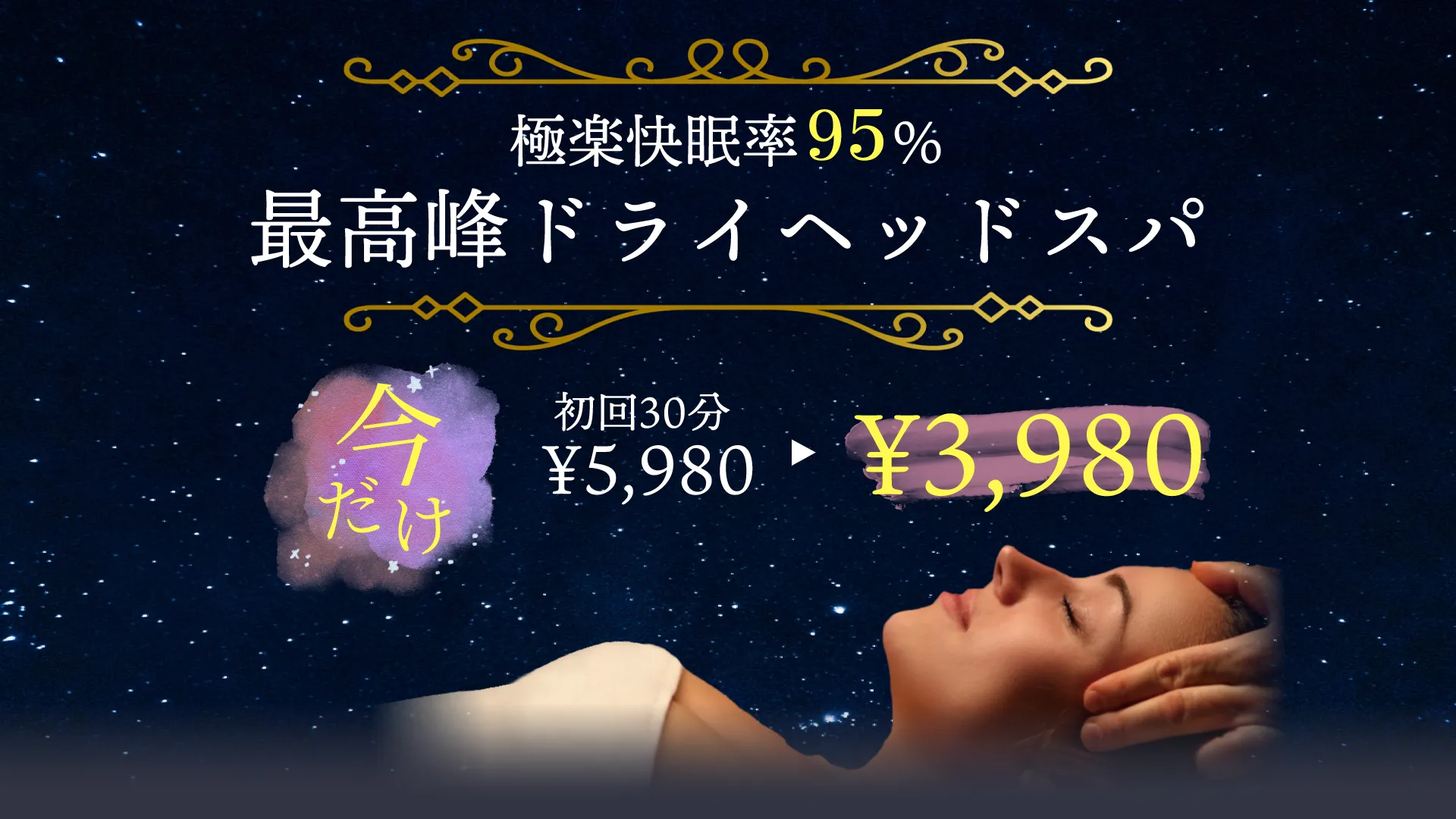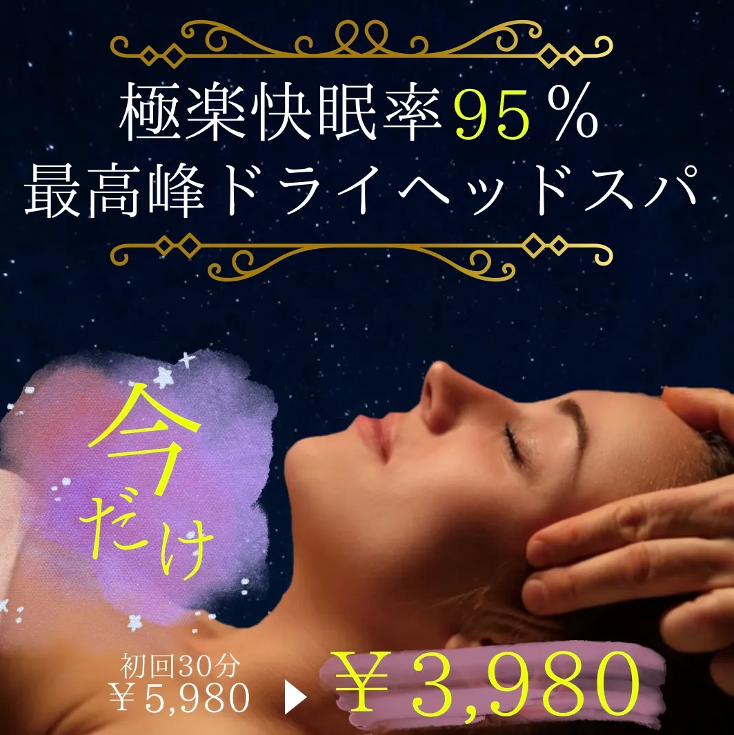 ヘッドスパでは水やオイルを使って頭をほぐしますが、ドライヘッドスパでは水を使わず、 直接頭皮に触れてマッサージを行うためフェイスラインのリフトアップや目の見開き、 眼精疲労の改善の効果が期待できる施術になります。